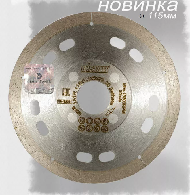 Диск алмазный Distar Esthete по керамогранитной плитке 1.1 мм рез, деликатная работа по всем видам керамической плитке, дополнительное охлаждение корпуса, стабильная работа в резе. Теперь доступно в 115 диаметре